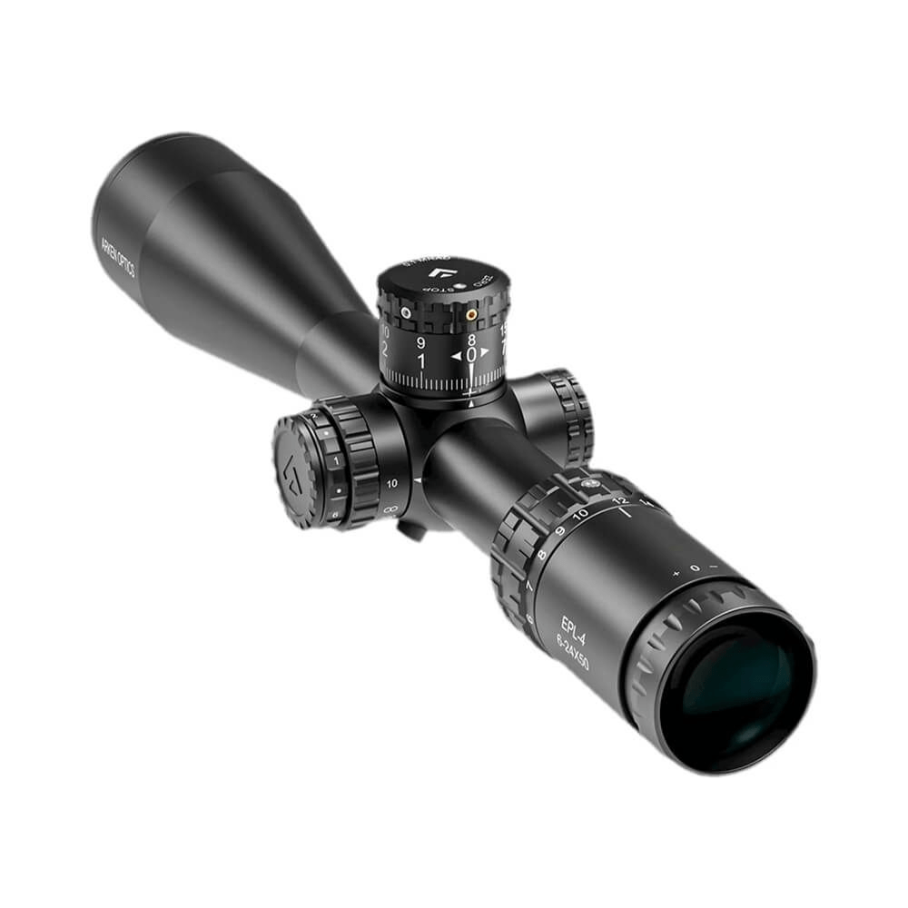 Construite autour d’un tube monobloc de 30 mm, l’EPL-4 reste légère tout en offrant une bonne rigidité. Les tourelles précises avec clics de 0,1 MRAD permettent des corrections fines, tandis que le système AZS Zero Stop facilite le retour rapide au réglage initial après des corrections balistiques.