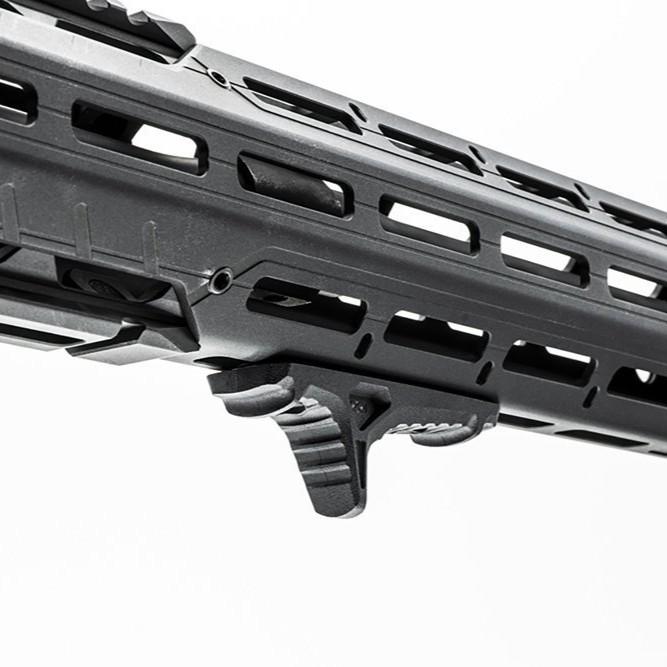 Sa forme ergonomique permet une meilleure stabilité et un meilleur contrôle lors des tirs rapides ou prolongés. Que ce soit pour servir de point de référence, de limite de glissement ou pour caler l’arme contre un support, cette butée s’adapte à votre style de tir.