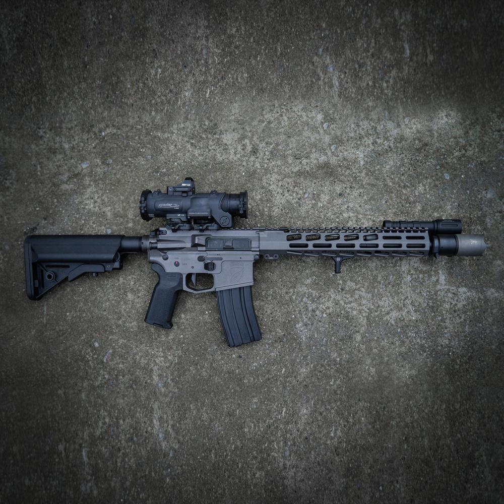 Agissant à la fois comme une poignée ergonomique et un handstop, elle offre un point d’appui sûr pour la main de support, tout en empêchant celle-ci de glisser vers l’avant, réduisant ainsi le risque de contact accidentel avec le canon ou le modérateur de son.